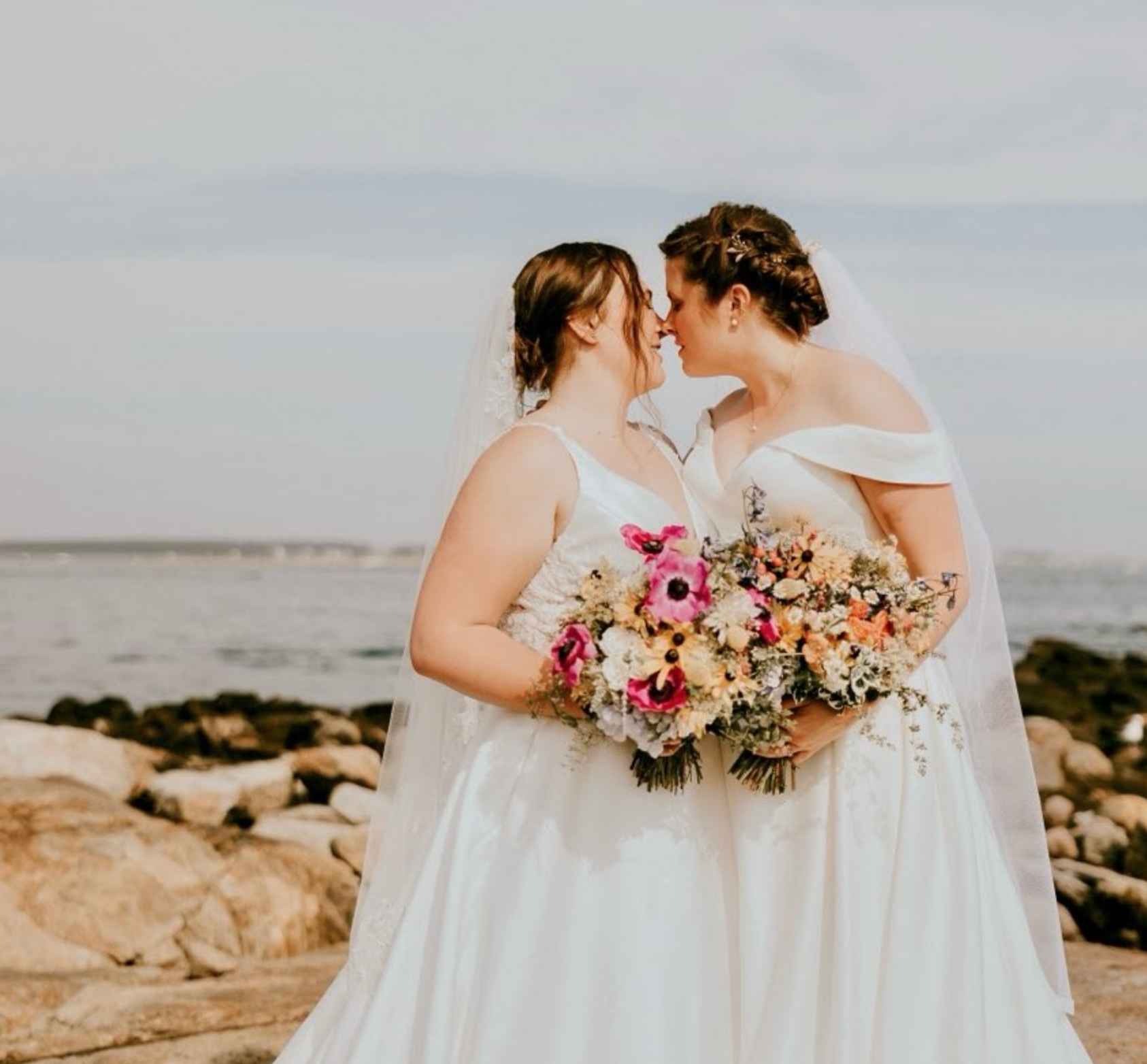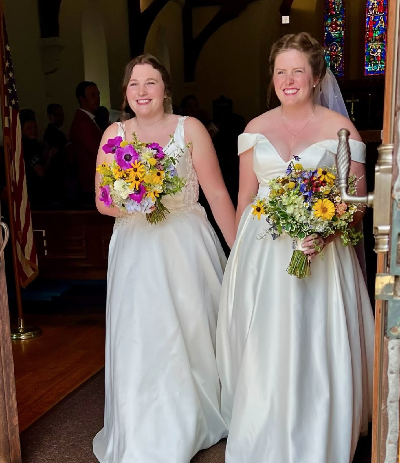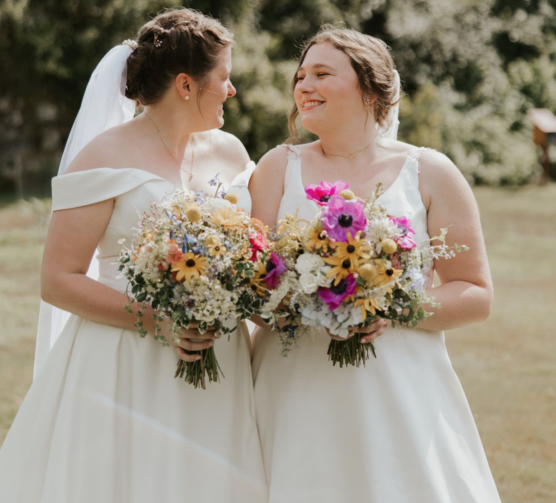 The challenge . . . create two bridal bouquets that were as unique as the brides that held them but that had elements linking them like their deep and abiding love. This summertime celebration brought together two wonderful families to witness the love of their two accomplished daughters. It was a heartfelt event from start to finish. The colorful wildflower elements of the florals for this wedding captured the natural, down-to-earth, fun nature of this lovely couple.
